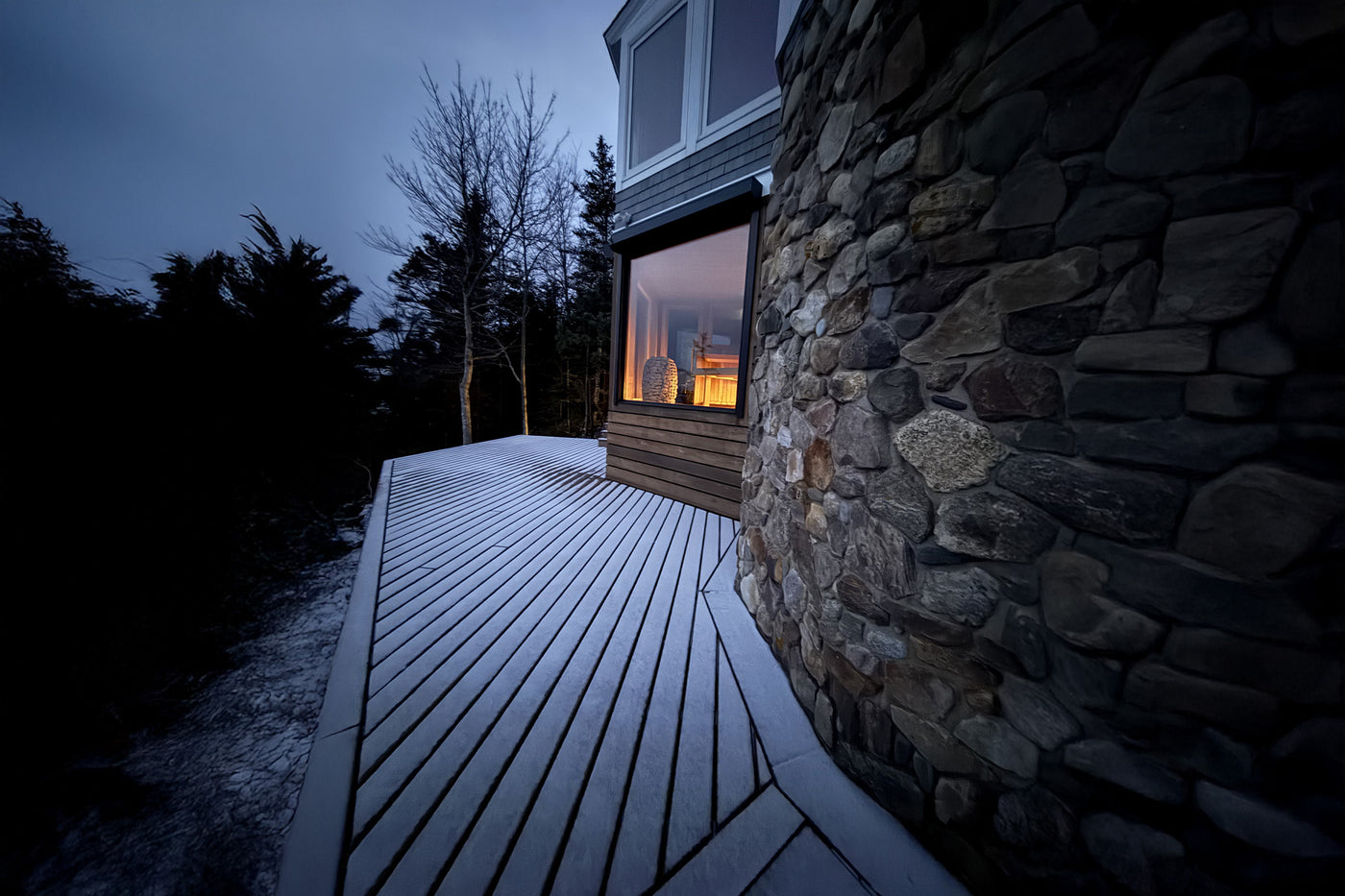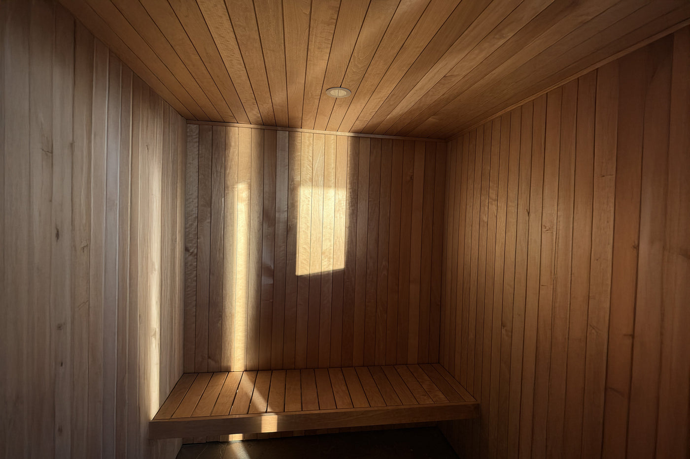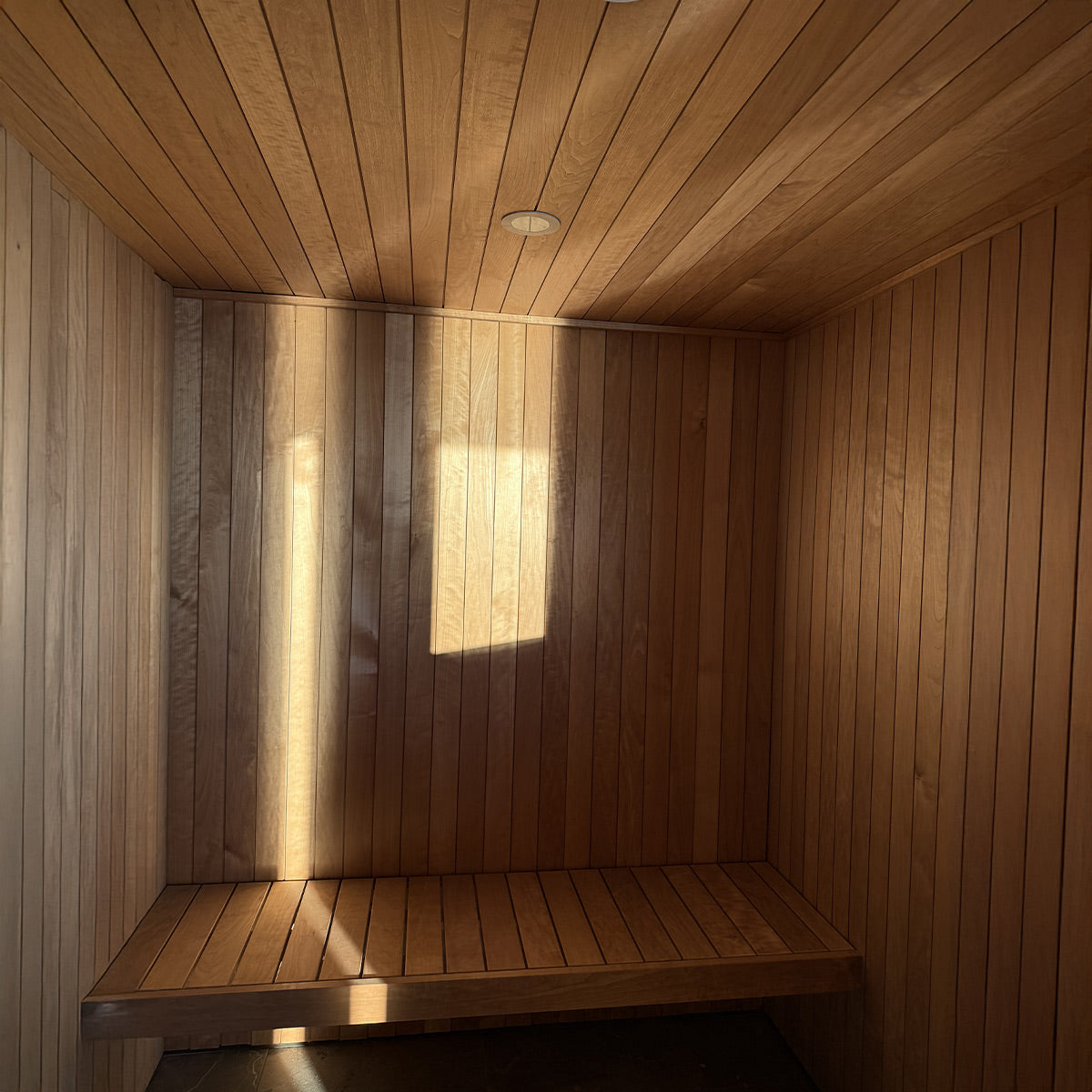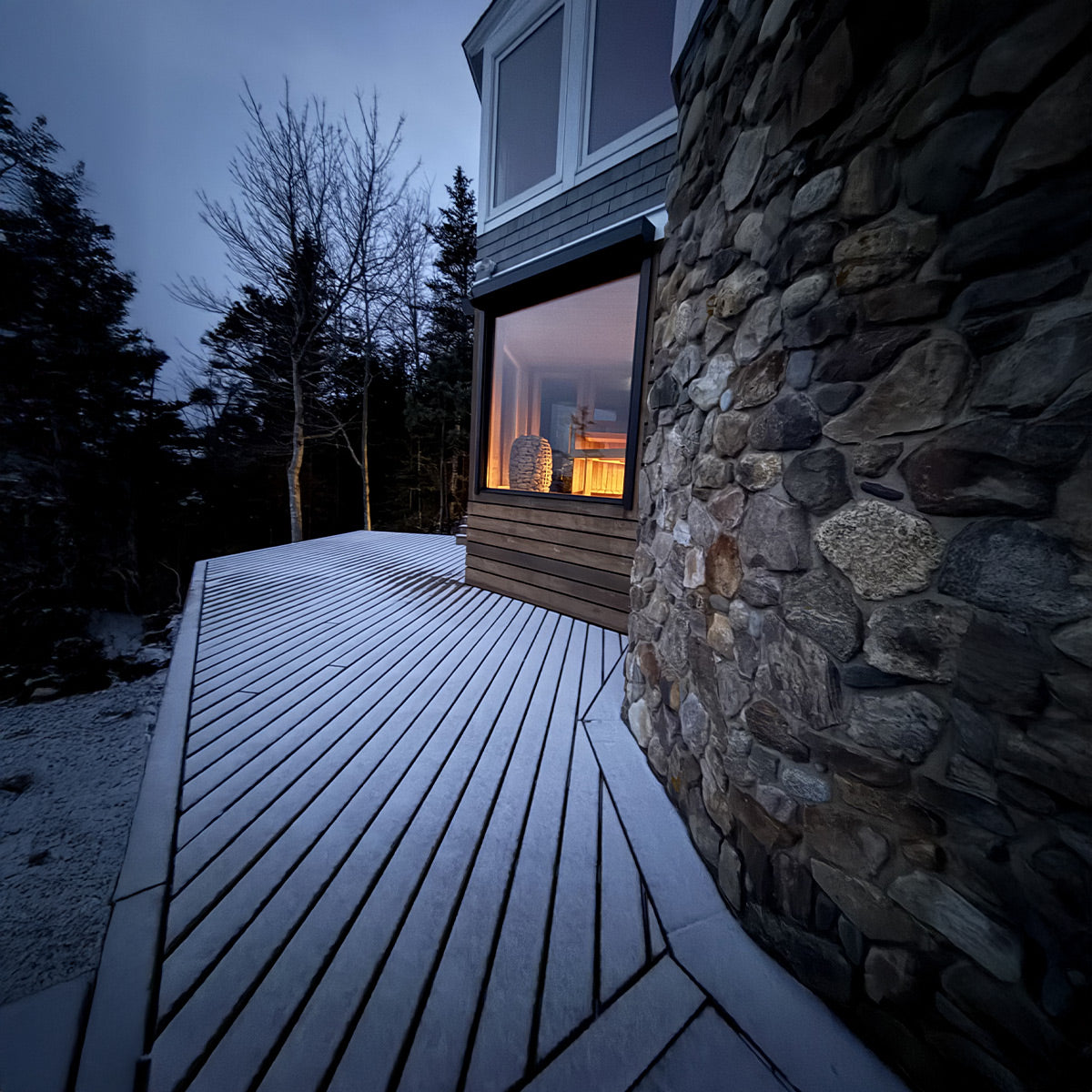 This has been our most extensive build yet, transforming an unusual exposed space into a stunning sauna retreat. We added a spacious sauna room and an extensive deck below, complete with two large 7 ft² windows that bring in breathtaking ocean views.