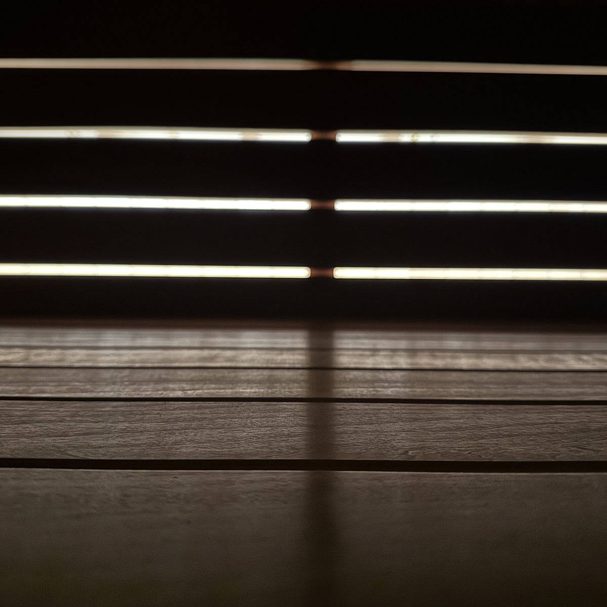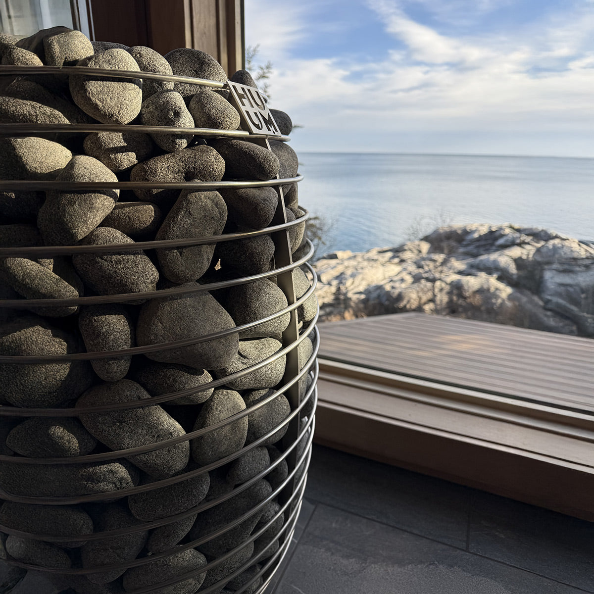 Enjoy the warmth of a powerful 15 kW HUUM hive heater and relax on the generous wrap-around benches.
