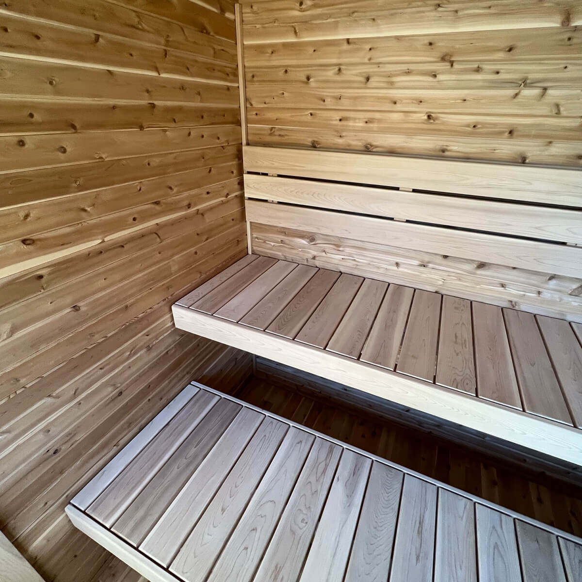 Discover the Hampton Sauna and experience modern style and relaxed comfort. With its sleek black exterior and large window, this sauna offers a perfect place to relax. Its huge 7ft bench ensures plenty of space for you and your guests.