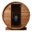 2-person, premium-quality DIY Barrel Sauna Kit. Natural light from the glass door illuminates this beautiful space. Includes comfortable benches for added convenience. Quality materials and superb engineering make this the very best outdoor sauna. Sauna heater not included.