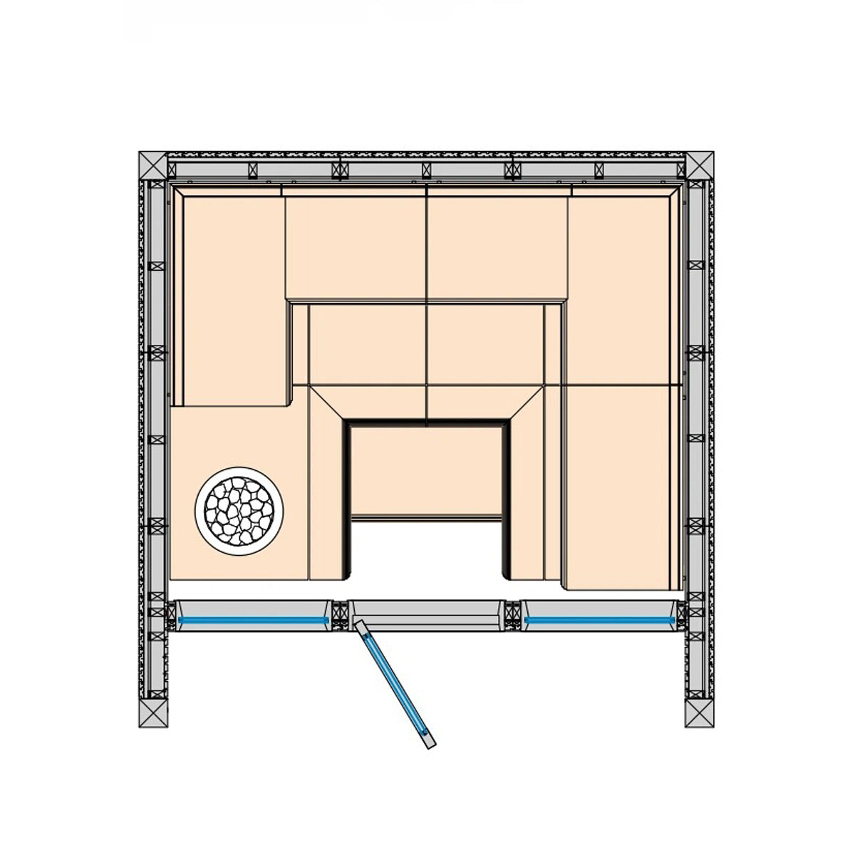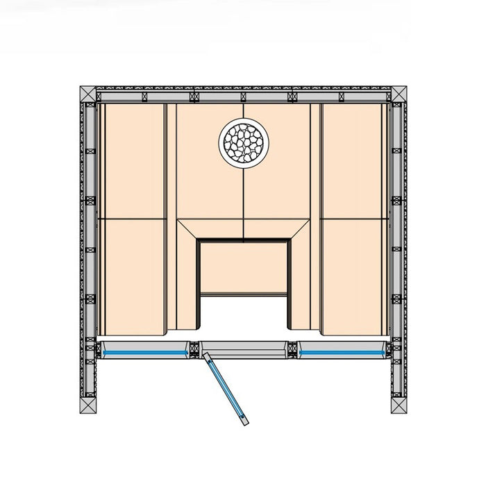 The sauna is equipped with the Cariitti Sauna Ultra Ambient lighting system, engineered specifically for sauna environments. Certified according to European standard Ta+125°C and UL-approved, it guarantees both safety and performance.