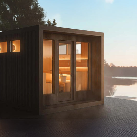 The TAIVE outdoor sauna introduces a groundbreaking modular design. Its robust wooden frame forms the foundation of the structure, designed to hold three interchangeable modules on each side for maximum flexibility.