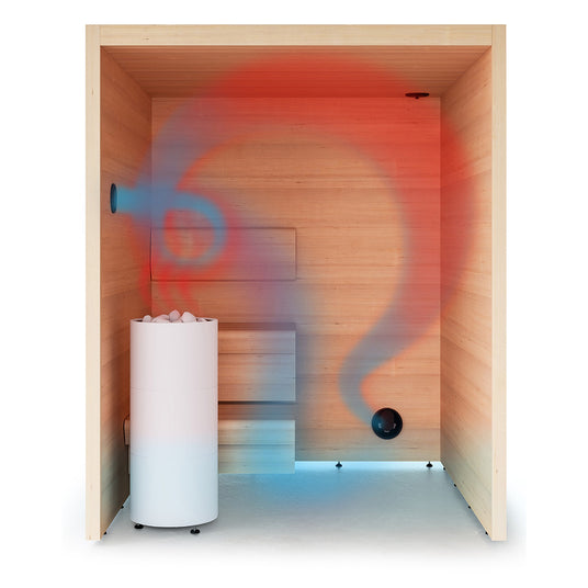 In well-functioning sauna ventilation, fresh air is led in from above the stove, so that it mixes more effectively with the warm air and does not remain at the floor level.