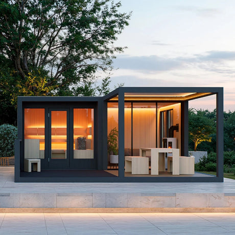TAIVE Outdoor Sauna with 3 Large Windows and Straight Bench