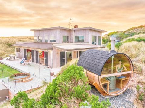 This HUUM Barrel chimney kit is designed for use with HUUM wood-fired sauna stoves inside Barrel saunas.
