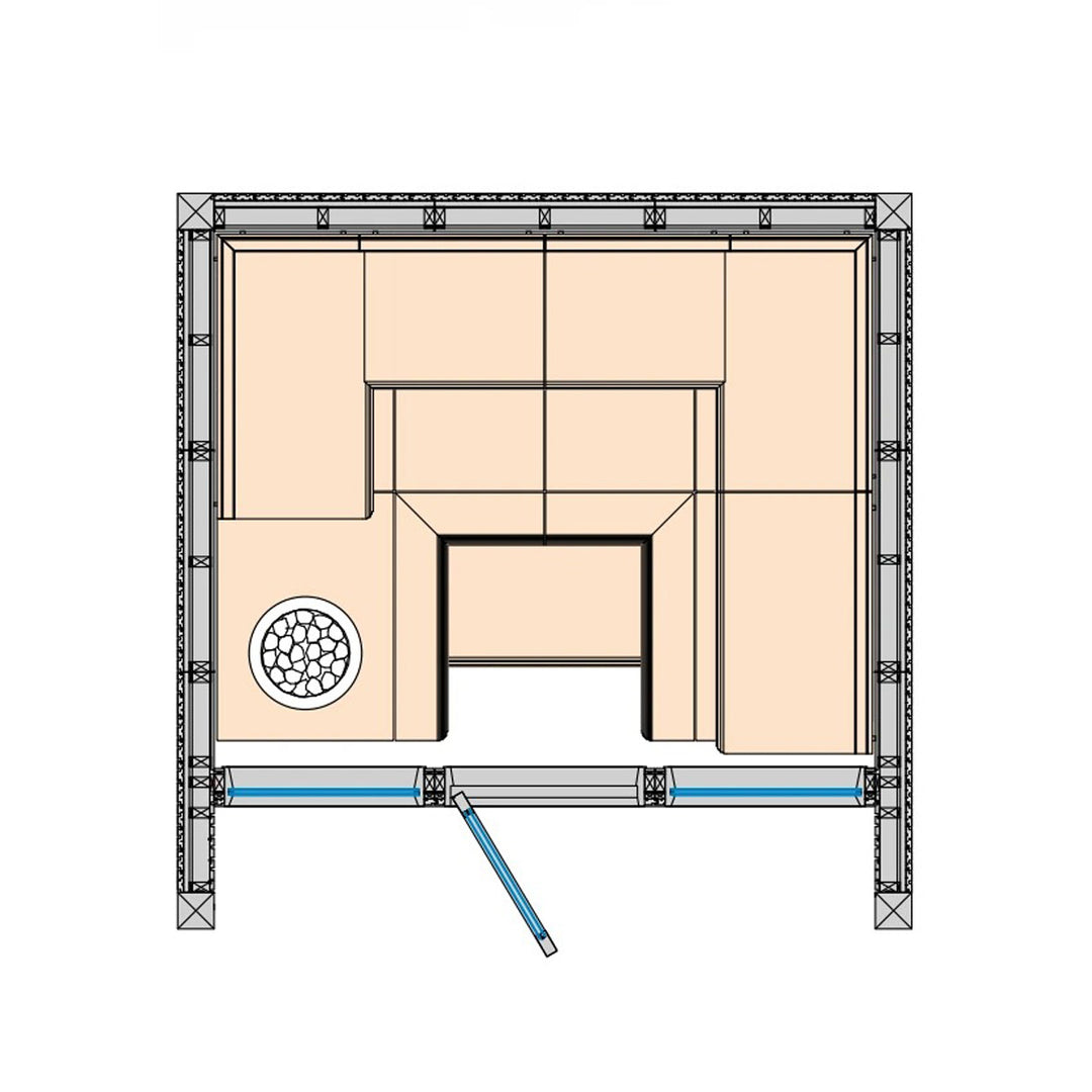 Minimalist and spacious, the straight bench layout is ideal for saunas with scenic views. Its clean lines allow the surrounding landscape to become part of the relaxation experience.