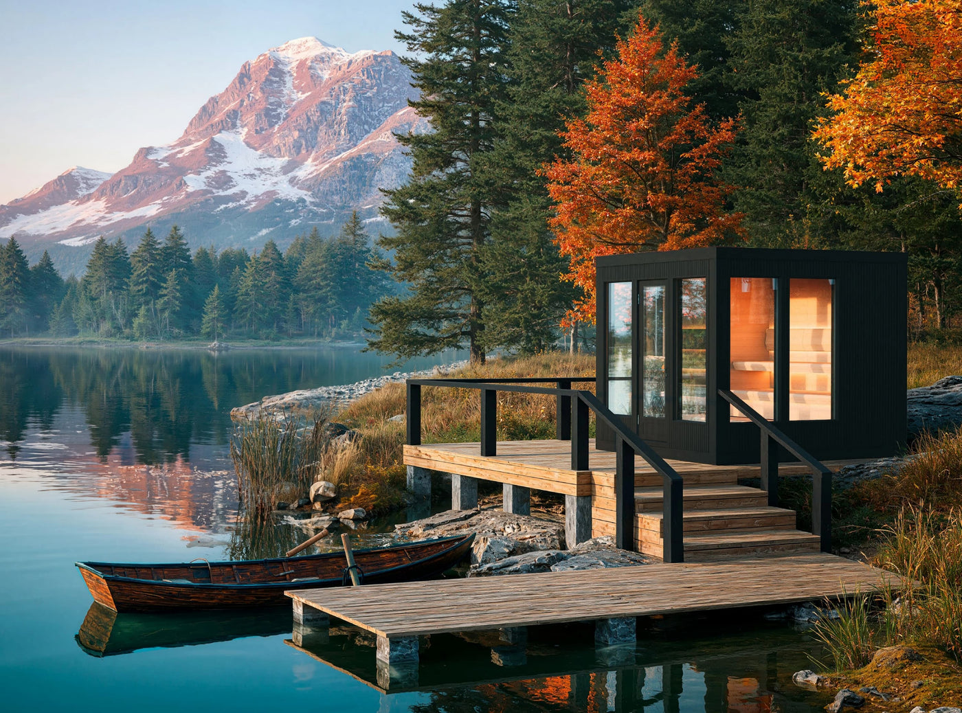 TAIVE Outdoor Sauna with 6 Large Windows & Straight TAIVE Bench