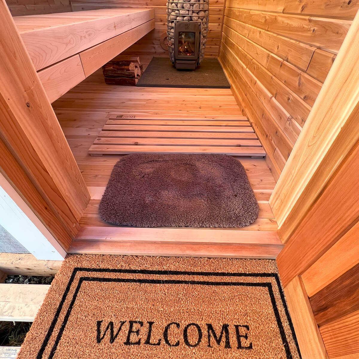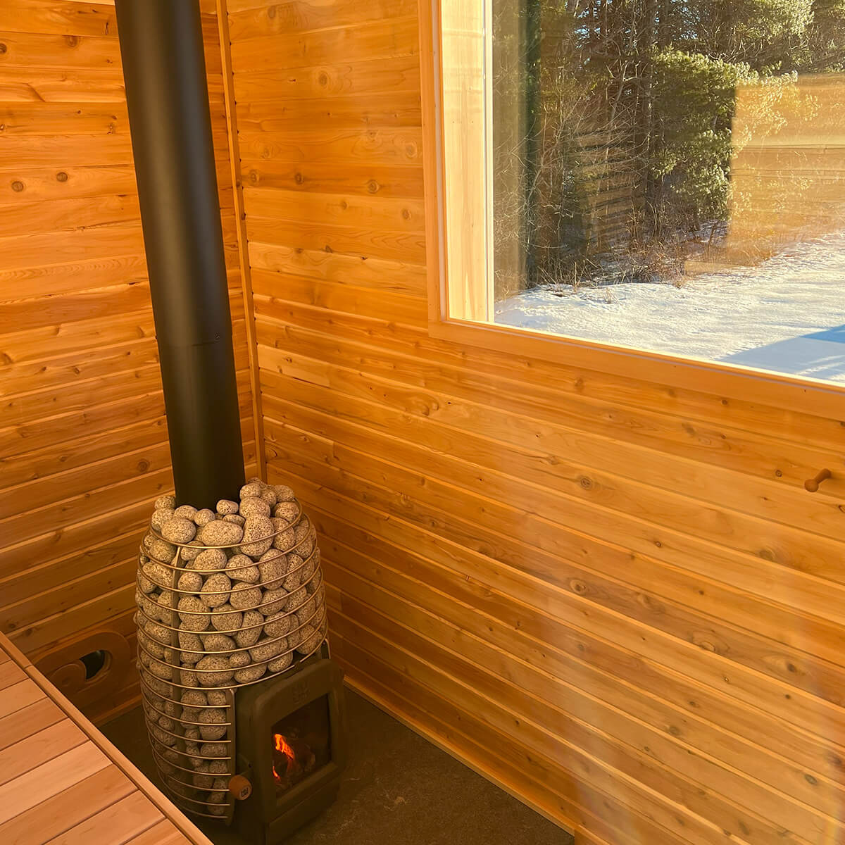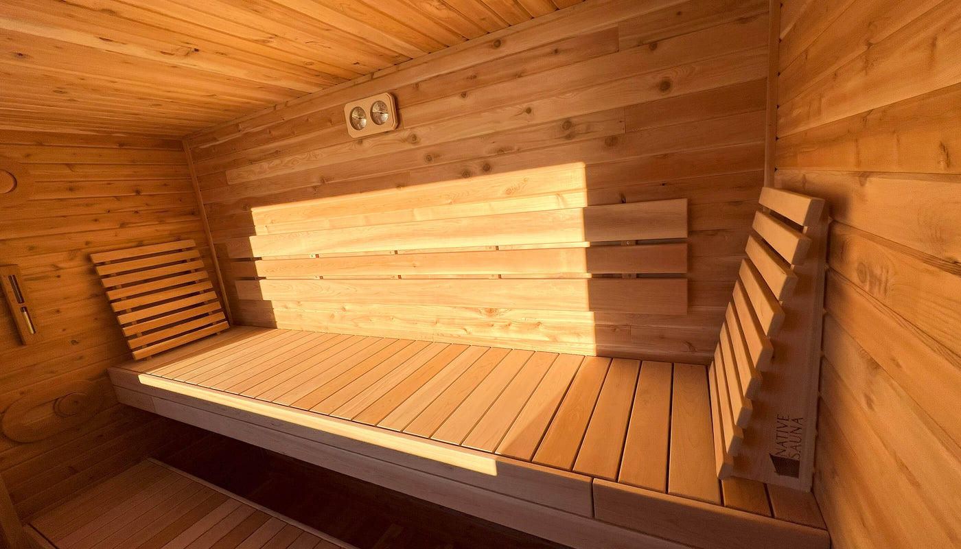 To enhance your comfort, the sauna boasts spacious 9 ft. clear cedar benches, thoughtfully designed for relaxation and rejuvenation. The natural aroma of cedar adds to the serene atmosphere, creating a sensory journey for your senses.