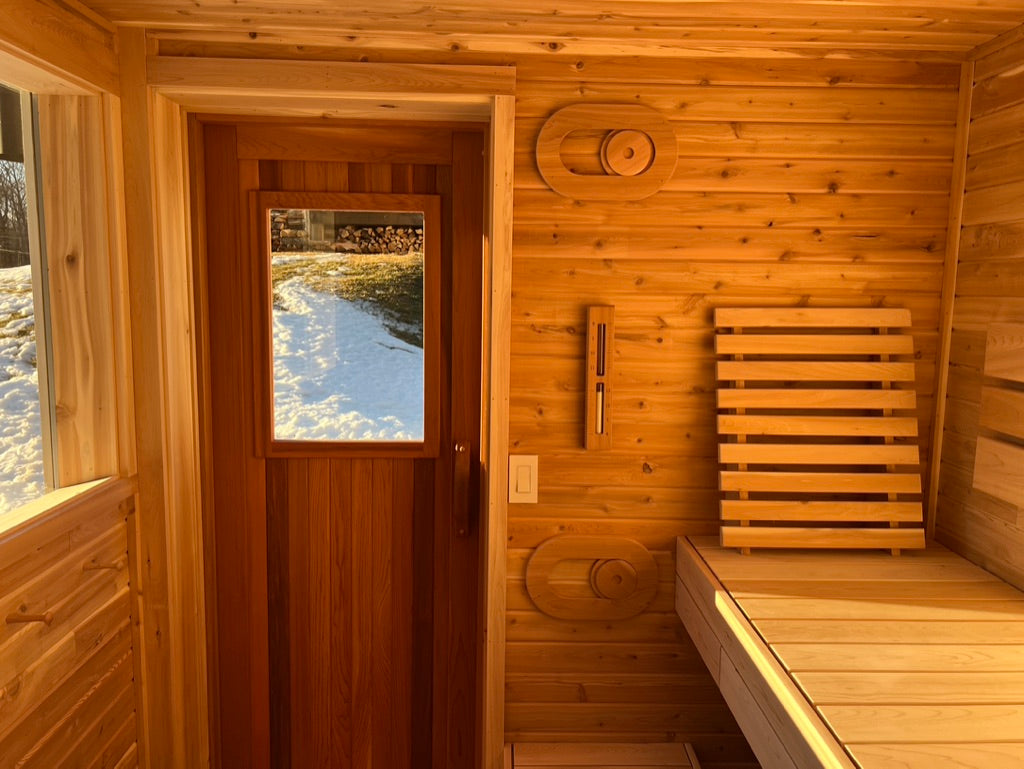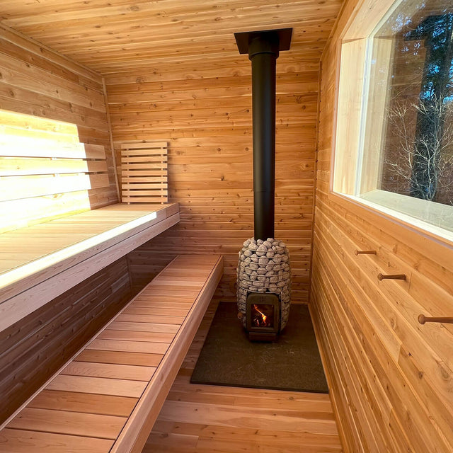 As you unwind, your gaze will be drawn to the expansive 6 x 3 ft. viewing window, connecting you with the serene surroundings. Whether it's the tranquil beauty of nature or a starry night sky, this window offers an uninterrupted view, letting you immerse yourself in the ever-changing landscape as you indulge in the healing powers of the sauna.