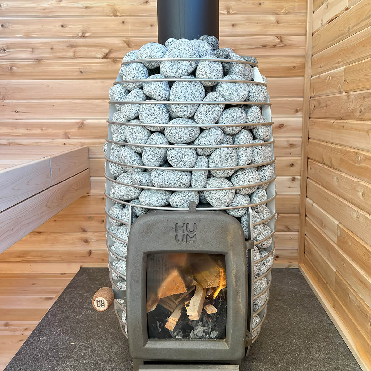 The Topsham sauna offers a truly immersive and relaxing experience. This cozy retreat is expertly crafted from a charming shed conversion, blending rustic aesthetics with modern comfort. Inside, you'll discover the heart of the sauna, the HUUM Hive 12 wood stove, which provides the perfect balance of heat and ambiance, enveloping you in a warm, soothing embrace.
